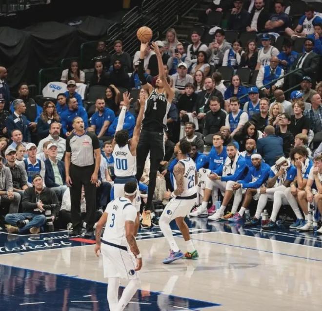 文班亚马在防守端的威慑力展现得淋漓尽致,虽然一开局就被持球突到禁区的胖虎完成一记隔扣,但他很快在一个防守回合里连续3次封盖胖虎。