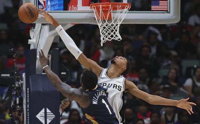 除了胖虎,鹈鹕的其他球员也不断被文班亚马所封盖,一时间导致鹈鹕的内线进攻都停滞了。